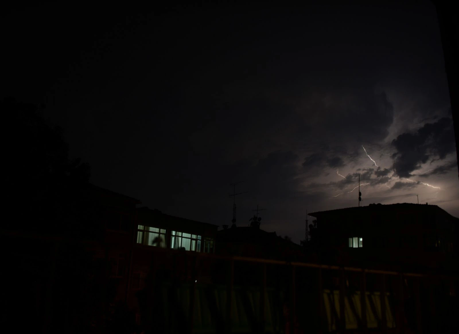 Çakan şimşekler ile gökyüzünün aydınlanması objektiflere yansıdı.