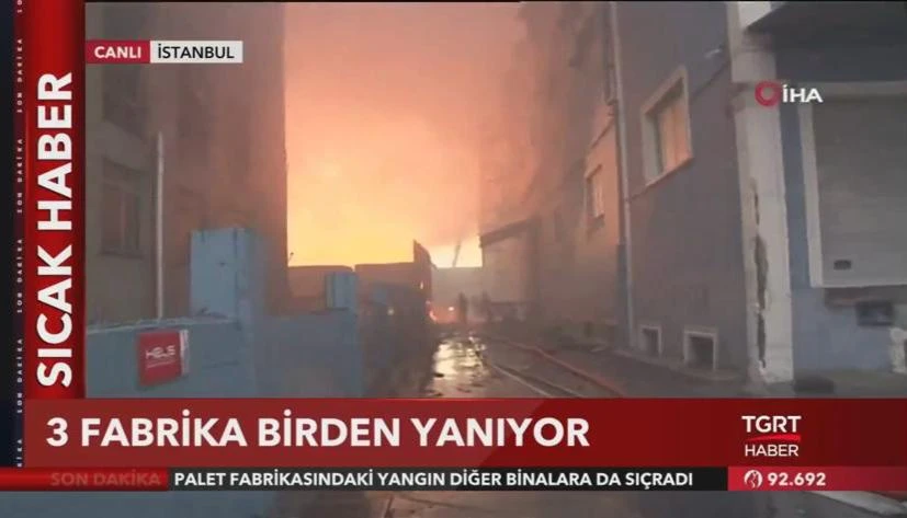 İstanbul Esenyurt'ta bulunan Kıraç Evren Oto Sanayi Sitesi bulunan bir palet fabrikasında bu sabah erken saatlerde yangın çıktı. Bir anda büyüyen yangın, binanın yanında bulunan alüminyum ve tekstil fabrikalarına sıçradı. Çok sayıda itfaiye ekibi şu an yangına müdahale ediyor.