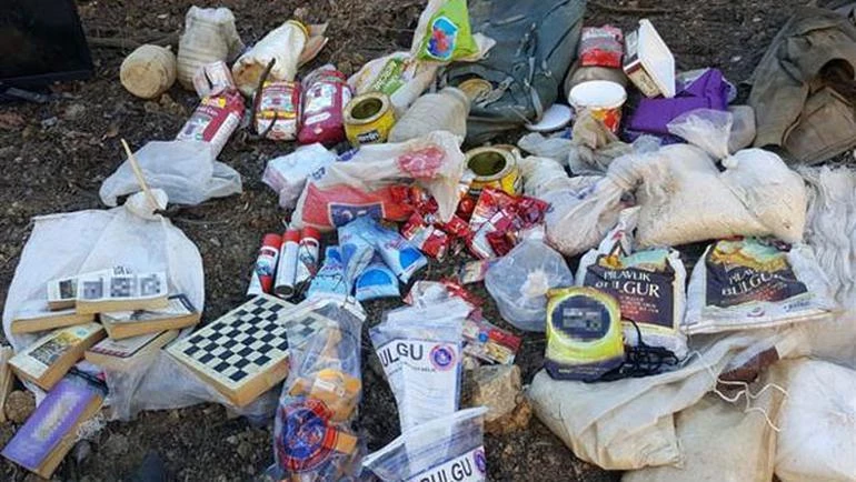 Terör örgütünün bölgede depo olarak kullandığı anlaşılan sığınakta birer adet satranç takımı ve tavla ile yemek listesi, kayıt cihazı ve kaseti, 5 not defteri, 62 adet pil, 5 adet 60'lık kamera kaseti, krem ve 9 parça halinde örgütsel doküman da bulundu. Hiç kullanılmadığı anlaşılan satranç takımının kutusunda olduğu belirtildi.