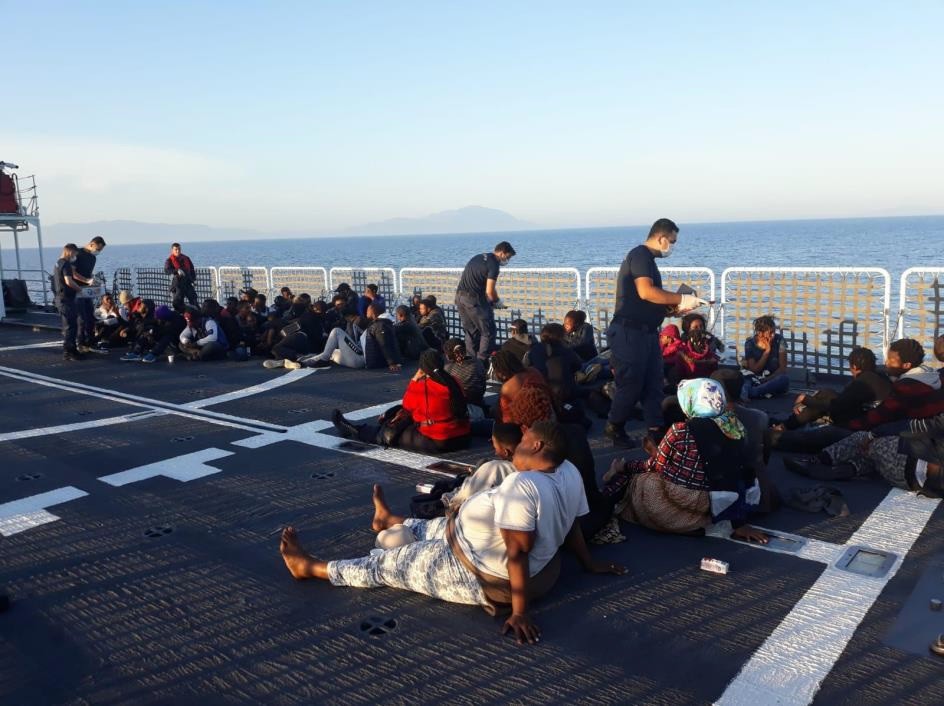 tespit eden Sahil Güvenlik ekipleri, bahse konu hareketli botu durdurularak içerisinde bulunan Afganistan uyruklu 45 düzensiz göçmen (16 erkek, 9 kadın, 20 çocuk) yakaladı.