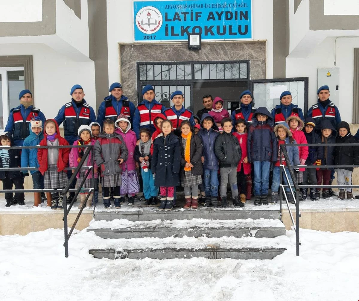 Beyaz örtünün tadını çıkaran öğrencilerin mutluluğu yüzlerinden okundu. Öğrencilere Jandarma Komutanlığı personeli tarafından oyuncaklar hediye edildi.