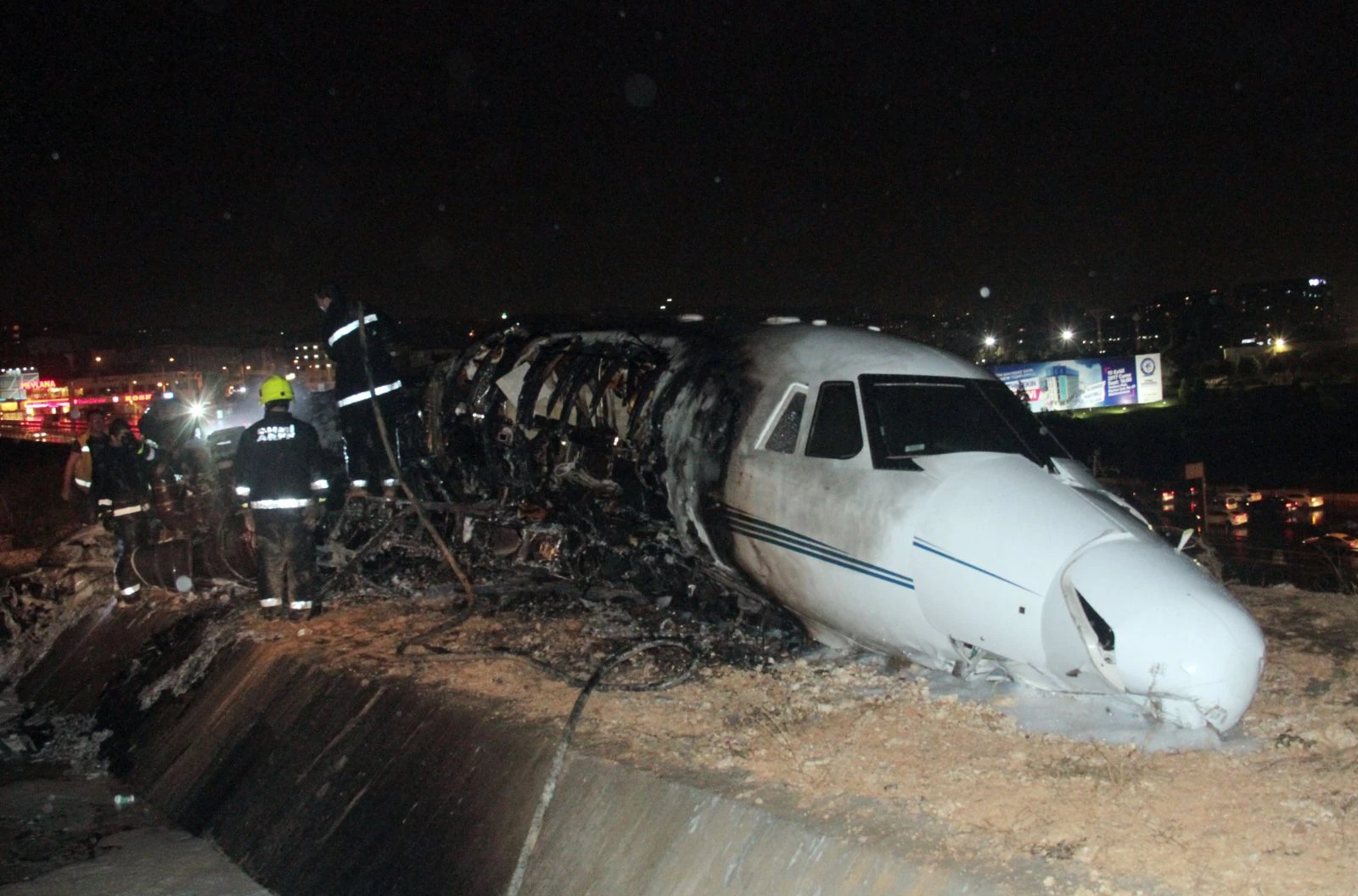 Atatürk Havalimanı'nda yaşanan özel jet kazasının ardından bölgeye olay yeri inceleme ekipleri geldi. İtfaiye ekipleri tarafından söndürülen uçağın enkazını ve çevresini inceleyen ekipler mürettebatın da eşyalarına baktı. Ekiplerin mürettebata ait olan çantaları incelediği görüldü. Jetin kazada fırlayan tekeri de görüntülendi.