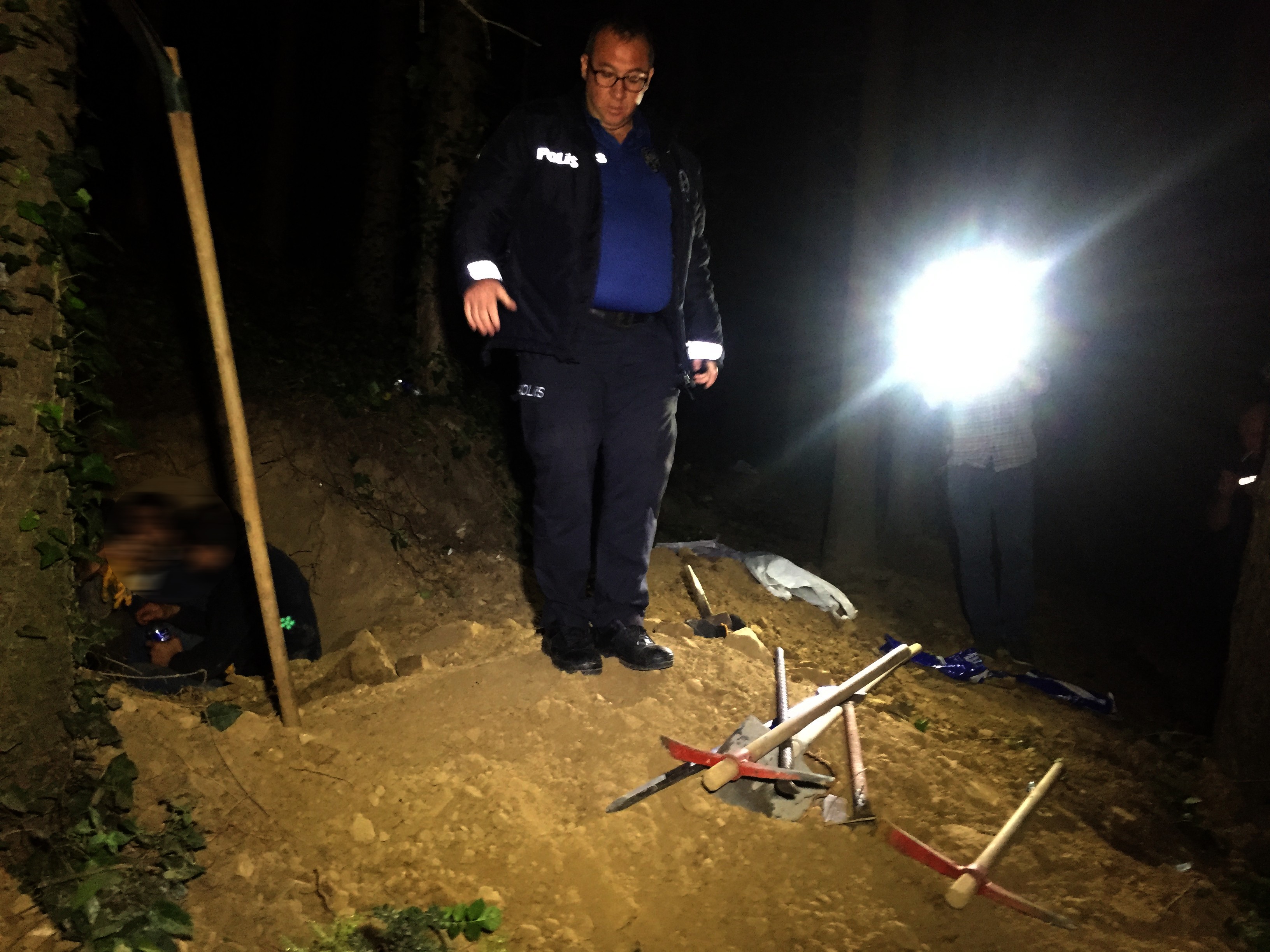 Olay, sahur vakti Yıldırım İlçesi Akçağlayan Mahallesinde meydana geldi. Sahura kalkan mahalle sakinleri ormanın içerisinden kazma ve kürek sesleri duyması üzerine 155 Polis İmdat Hattına ihbarda bulundu. Olay yerine çok sayıda polis ekibi sevk edildi. Gelen polis ekipleri film sahnelerini aratmayan operasyon düzenledi. Ekipler ormanın içerisine doğru sessiz bir şekilde ilerlerken yaklaşık 3 metrelik çukur kazan dört kişiyi kazdıkları kuyunun içerisinde suç üstü yakalayarak etkisiz hale getirdi. Şüphelilerden bir kişi ormanın derinliklerine doğru kaçarak izini kaybettirdi. Polis ekipleri fenerle çevrede kaçan şahsı yakalamak için arama başlattığı sırada bir kişinin yerde hareketsiz şekilde yattığını gördü. Yanına yaklaştığında otların arasında nefesini tutarak saklanmaya çalışan ve kaçan şüpheli olduğunu tespit eden ekipler şüpheliyi kıskıvrak yakalayarak etkisiz hale getirmeyi başardı. Şüphelileri kazdıkları kuyuda bekleten ekipler üst aramalarını yaptıktan sonra polis otosuna bindirerek ifadelerini almak üzere karakola götürdü.