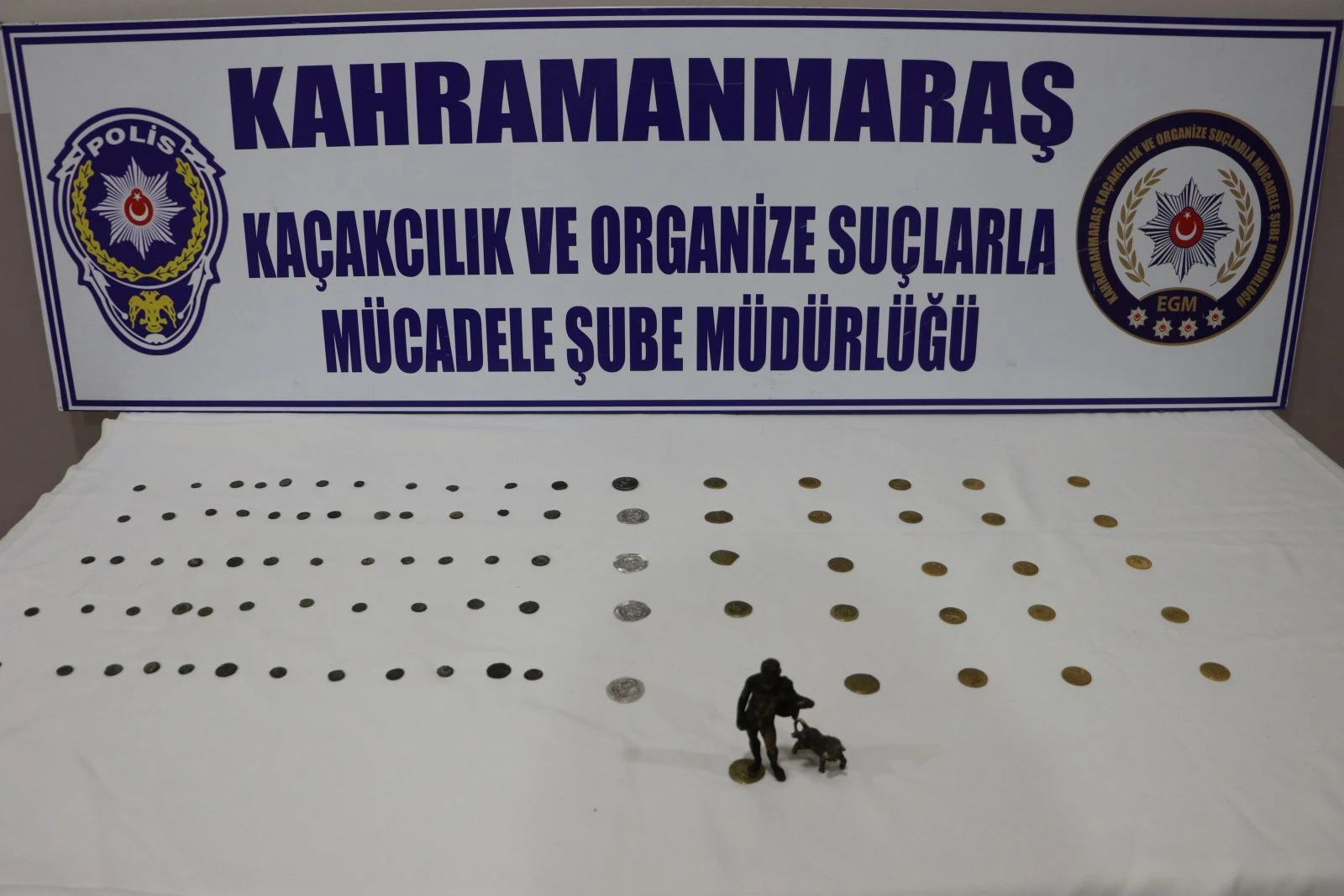 Alınan bilgilere göre, İl Emniyet Müdürlüğü Kaçakçılık ve Organize Suçlarla Mücadele Şube Müdürlüğü ekipleri, uzun süreli takibi sonucu akşam saatlerinde Onikişubat ilçesine bağlı Karacaoğlan Mahallesi Ahmet Uncu Caddesi üzerinde bulunan kahvehaneye operasyon düzenledi. Operasyonda kahvehane içerisinde arama yapan polis ekipleri, çöp kovası içinde ‘Roma Helenistik Antik’ dönemine ait olduğu değerlendirilen 88 adet sikke ve 2 adet heykelcik ele geçirdi. İş yerinde çalışan M.K.’ya ait olduğu tespit edilen tarihi eserlere el konuldu. M.K.’nın tarihi eserleri, kazı yaparak ve başka kişilerden temin ederek toplandığı öğrenildi.