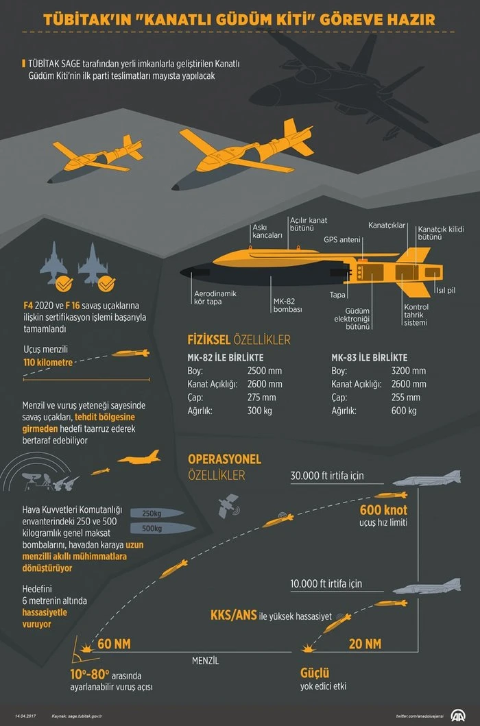 Mevcut güdümsüz 1000 lb'lik MK-83 ve 500 lb'lik MK-82 genel maksat bombalarını havadan karaya atılan uzun menzilli akıllı mühimmata çeviren KGK'nın üretim faaliyetleri başta Kale Grubu olmak üzere birçok savunma sanayisi kuruluşu ile birlikte yürütüldü. TÜBİTAK SAGE, bu üretimlerde rol alan alt yükleniciler ile savunma sanayisinin gelişmesine katkıda bulundu.