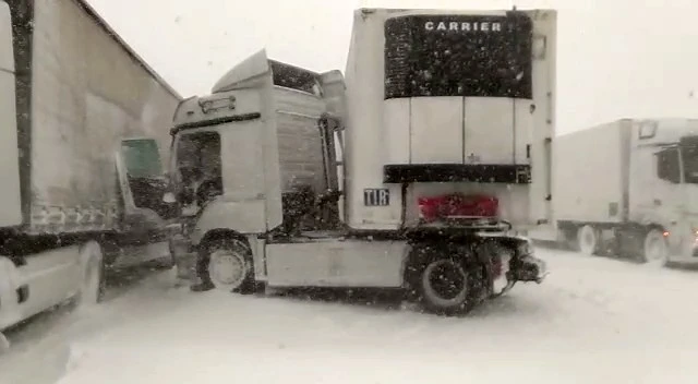 TEM Otoyolu'nda tır sürücüleri bölgedeki dinlenme tesislerine yönlendirildi. Kar yağışının etkisiyle çok sayıda trafik kazası oldu.