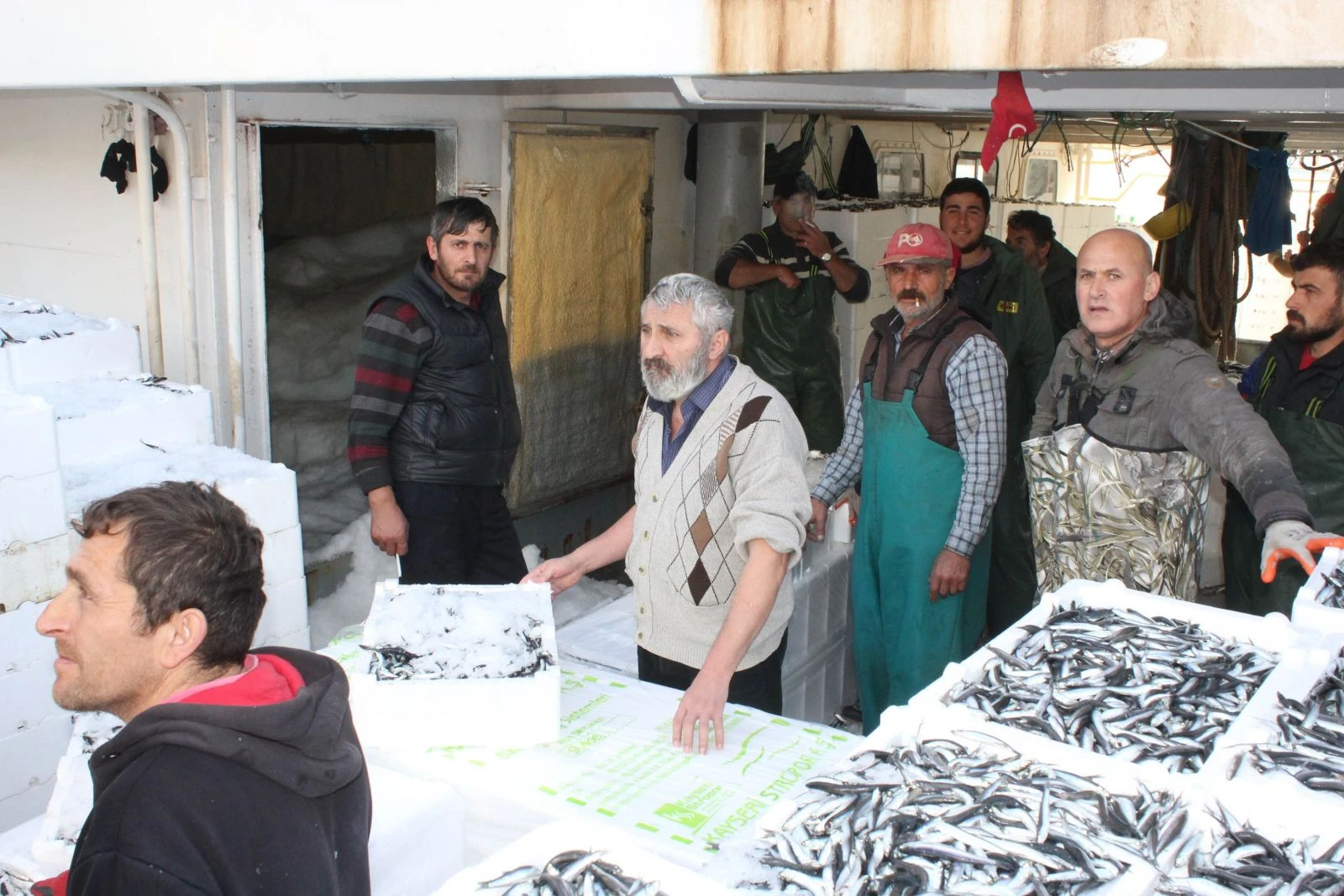Trabzonlu Balıkçı Muhammed Özçelik, Sinop'tan denize açıldıklarını, İnebolu açıklarında kasalar dolusu hamsi avladıklarını belirtti.