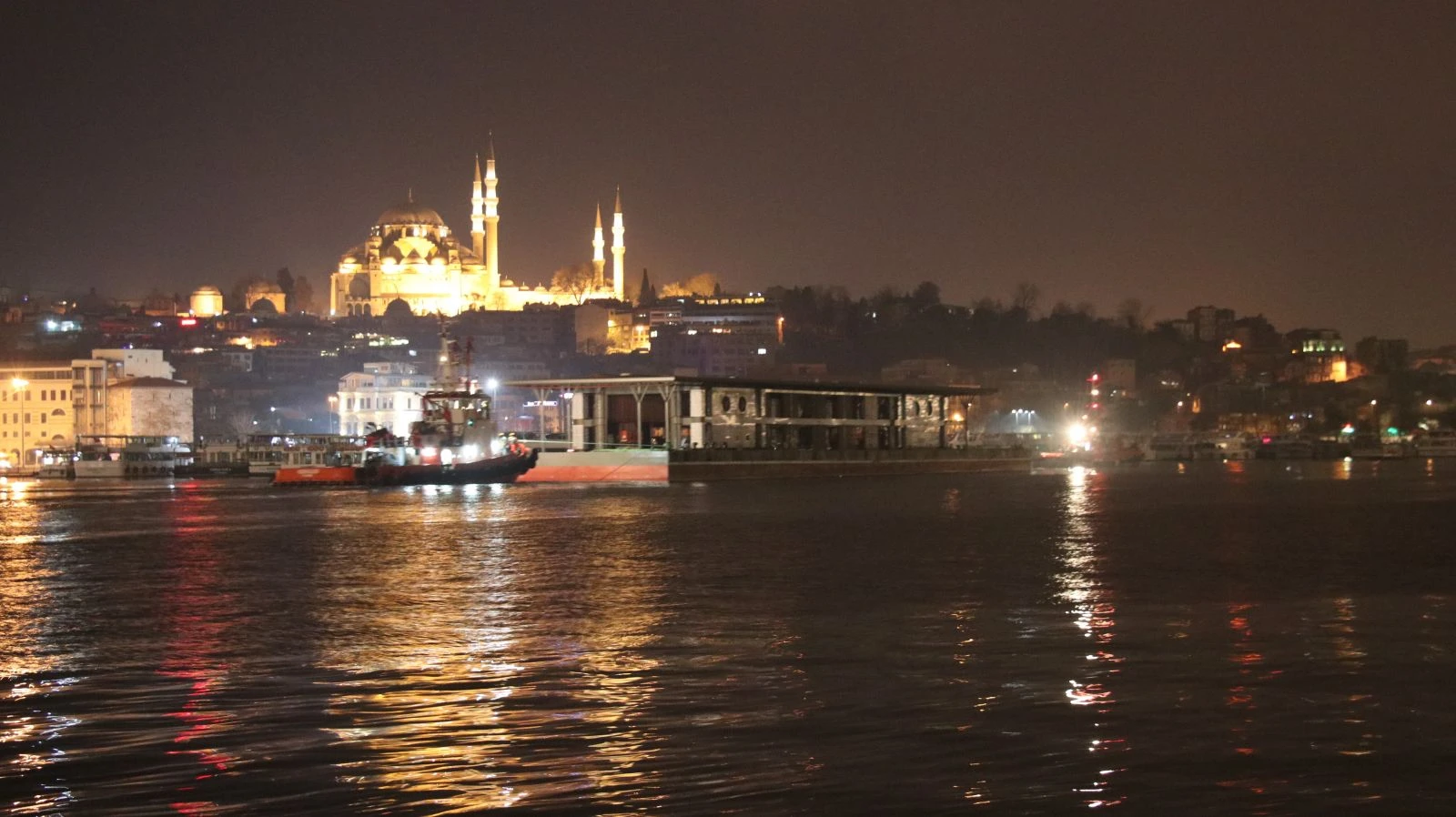 Son işlemlerinin tamamlanmasının ardından hizmet vermeye başlayacak olan yeni yüzer iskelenin römorkörlar yardımıyla getirilişi havadan görüntülendi. İskelenin Atatürk Köprüsü, Haliç Metro Köprüsü ve Galata Köprüsünden geçişleri ise renkli görüntüler oluşturdu.