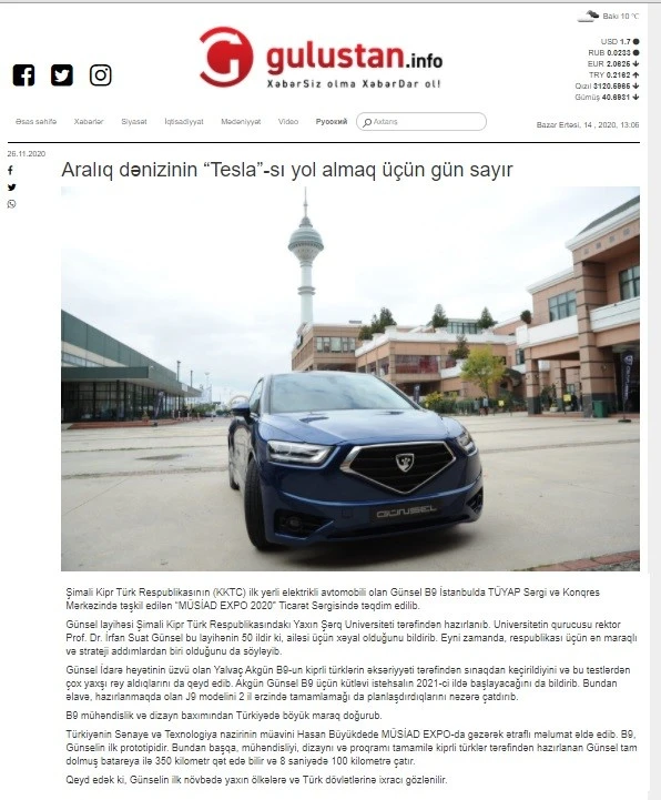 Azerbaycan'da yayın yapan Kanal 8, GÜNSEL’i haberleştirirken “Akdeniz’in Tesla’sı yola çıkmak için gün sayıyor” başlığını kullandı. GÜNSEL'in Kuzey Kıbrıs Türk Cumhuriyeti’nde Yakın Doğu Üniversitesi tarafından hayata geçirildiği vurgulanan haberde, ‘Cumhuriyet için en ilginç ve stratejik adımlardan biri’ olarak tanımlandı. GÜNSEL B9’un mühendislik ve tasarım açısından büyük ilgi uyandırdığı aktarılan haberde, GÜNSEL'in komşu ülkelere ve Türk ülkelerine ihraç edilmesinin beklendiği belirtildi. Kanal 8’in yanı sıra Azerbaycan’da başta Gulistan olmak üzere gazete ve internet sitelerinde de GÜNSEL’e yer verildi.