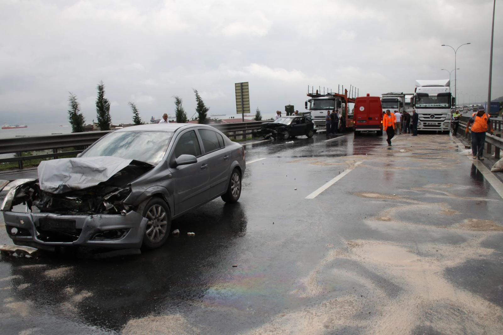 Alınan bilgiye göre, otoyolun Hacıosman Mahallesi mevkisi Ankara yönünde seyreden İbrahim Sarıyer (61) yönetimindeki Otomobil, aynı istikametteki sürücüsünün ismi henüz öğrenilemeyen tıra çarptı. Daha sonra bariyerlere vurarak durabilen otomobile, arkadan gelen Samsun Cumhuriyet Savcısı Ali Evcimen idaresindeki otomobil de çarptı. Kazada ağır yaralanan ve sağlık ekiplerinin müdahalesinin ardından Körfez Devlet Hastanesine kaldırılan Sarıyer, burada yapılan müdahaleye rağmen kurtarılamadı. Kazada hafif yaralanan diğer otomobilin sürücüsü Ali, eşi Elif, çocukları Kerem ve İnci Evcimen ile kayınvalidesi Zeliha Kıran, Derince eğitim ve Araştırma Hastanesine götürüldü. Otoyolda bir süre aksayan trafik akışı, kazaya karışan araçların olay yerinden kaldırılmasının ardından normale döndü.