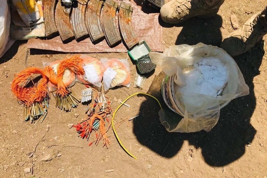 Ayrıca, söz konusu tüneldeki gizli bölmede yapılan arama-tarama faaliyetleri sonucunda, 450 adet biksi mühimmatı, 100 adet AK-47 mühimmatı ve 6 adet AK-47 şarjörü, 20 adet Svd Dragunov (Kanas) mühimmatı, 6 adet 200 milimetre (mm) dinamit kalıbı, 5 kilogram (kg) C4 patlayıcı, 300 adet elektrikli fünye, 50 adet mekanik fünye, 1 adet Svd Dragunov şarjörü, 3 adet hilti ve 3 adet hilti ucu, 5 adet gaz maskesi ve 6 adet gaz maskesi süzgeci, 3 adet pil bloğu ve 4 adet pil, 1 adet oksijen tüpü, 3 adet şemsiye, 1 adet LCD monitör, 1 adet inverter (UPS) ve 60 metre (m) görüntü kablosu ele geçirildiği öğrenildi.