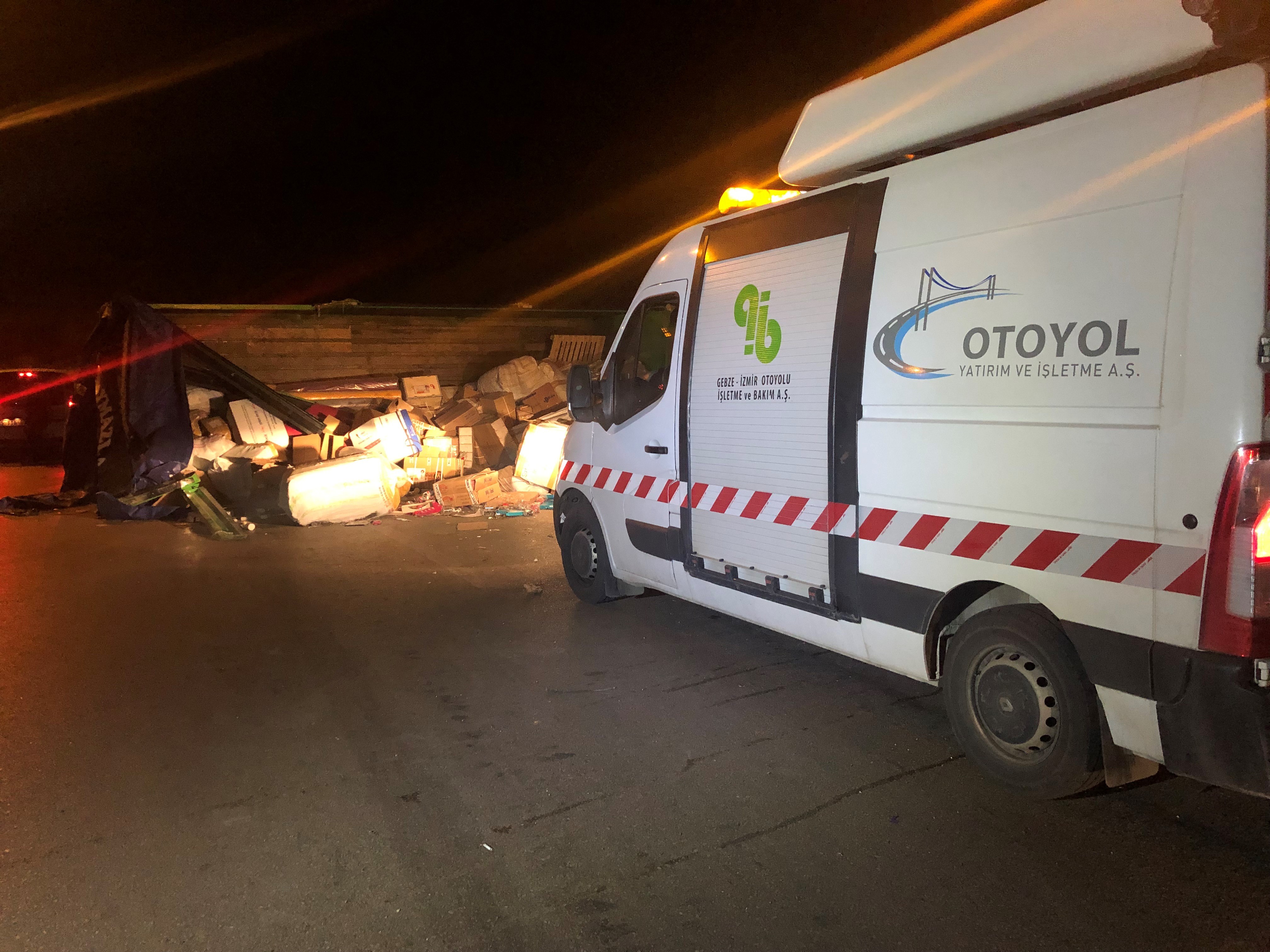 Kaza, Bursa şehir merkezi İstanbul otoban bağlantısında meydana geldi. Edinilen bilgiye göre, 03 ABZ 504 plakalı TIR sürücüsü Alamettin Kaymaz(54) İstanbul’dan yüklediği oyuncakları Aydın’a götürmek için hareket etti. İstanbul-İzmir otobanı Bursa bağlantı girişinde virajı alamayıp kontrolden çıkan TIR yol ortasında yan yattı. Yan yatan TIR sürücüsü Alamettin Kaymaz TIR ile bariyer arasında sıkışırken, TIR'ın içindeki oyuncaklar yola savruldu. Vatandaşların ihbarı üzerine olay yerine polis ve sağlık ekipleri sevk edildi. TIR sürücüsü sağlık ekipleri tarafından olay yerinde yapılan ilk müdahalenin ardından Uludağ Üniversitesi Tıp Fakültesi Hastanesi'ne kaldırıldı. Trafik ekipleri yan yatan TIR'ın bulunduğu kavşağı trafiğe kapatarak çevredeki güvenliği sağlarken, Bursa-İstanbul otoban girişinde kilometrelerce kuyruk oluştu. Yan yatan TIR yaklaşık 2 saatlik müdahalenin ardından çekici yardımıyla kaldırılırken, karayollarına bağlı ekipler de yola savrulan oyuncakları yoldan kaldırdı.