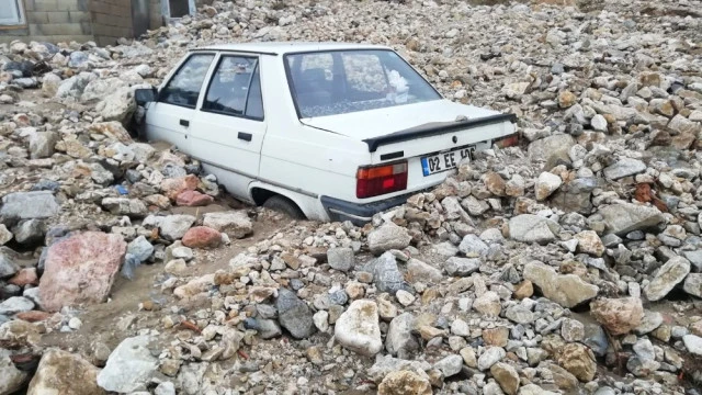 Adıyaman'ın Gölbaşı ilçesine bağlı Meydan köyünde şiddetli yağış nedeniyle meydana gelen heyelan otomobilleri yuttu.