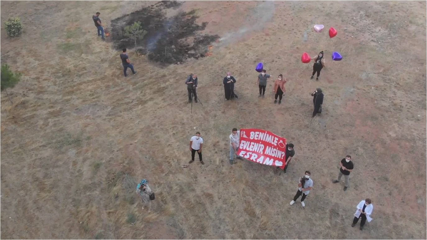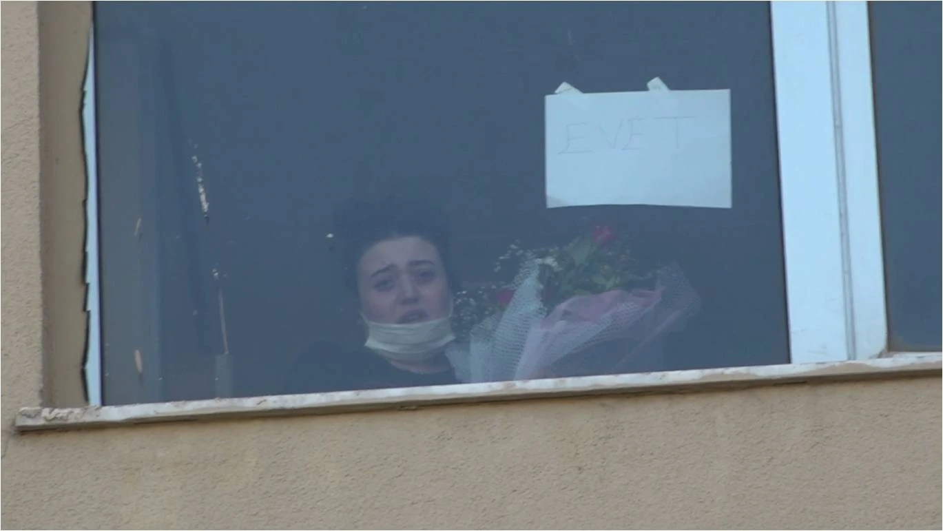Korona virüsle mücadele ettiği bir süreçte hiç beklemediği bir sürprizle karşılaşan Esra Akbay, şaşkınlık ve heyecan içerisinde Sedat Akbay’ın evlilik teklifine kağıt üzerine yazıp pencereye doğru tuttuğu “Evet” ile karşılık verdi. Genç çiftin mutlulukları gözlerinden okunurken, çevredekilerde alkışlarla mutluluklarına ortak oldu. Gerçekleştirilen sürpriz evlilik teklifi Sedat Akbay’ın hemşireler aracılığıyla nişanlısına gönderdiği bir demek çiçeğin ulaştırılmasıyla sonlandı.