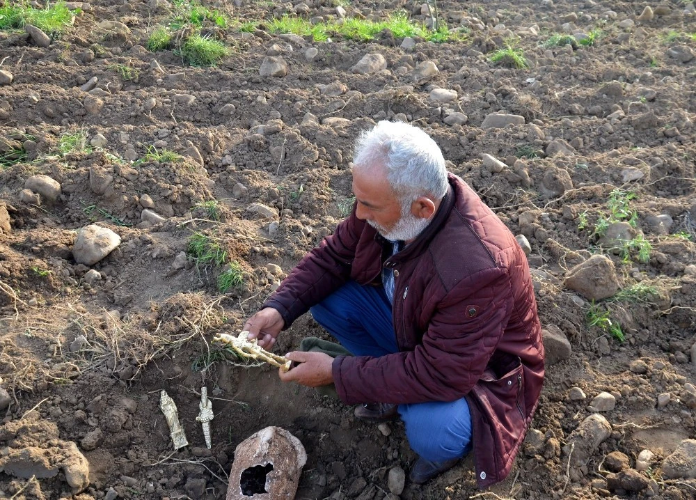 Dolandırıcıların tarla satın alma vaadiyle kendisiyle görüştüğünü söyleyen çiftçi Yakup Kökçeoğlu, “Ben burada tarlamda uğraşıyordum, bir araba geldi yolun üstünde durdu. Burada satılık tarla var mı dediler. Bende soruşturalım dedim. Sordum ben yeğeni de aradım, 15 dönüm tarlam var fiyatı da 15 bin lira dedi. Bize yol üstünde lazım diyerek kabul etmediler. Benim de telefon numaramı aldılar. Böyle bir satılık yer olursa abi bize bilgi ver dediler. Ben de karakolun orada 24 dönüm var dedim. Levhada yazıyor dedim, çektiler gittiler adamlar. Aradan 3-4 ay geçti bu adamlar beni aradı. Abi biz tarla diye gelmedik de, biz define arıyorduk, define bulduk, elimizde harita var, makine var dediler. Burada kralın hazinesi varmış dediler. O zaman gelin çıkaralım abi dedim. Nerede diye sordum, olmaz bizim gelip göstermemiz lazım dediler. Akşam saatlerinde geldiler gösterdiler, üzerine büyük taşlar koymuşlar, önceden bulduklarına dair işaret koymuşlar. Üzerinde otlar çıkmış, dünkü mesele değil en az bunun üzerinden 5-6 ay geçmiş, ot çıkmış geri tekrar. Geldim kazdım, 1 metre kadar indim, büyük bir taş çıktı. Taşı kaldırdım biraz daha indim altına, beyaz bir şey çıktı. Kurban olduğum çıktı hazine dedim, üstüne yattım. Çıkardım eve götürdüm adamı aradım. Dedim abi ben hazineyi aldım buradan. Nasıl bizden habersiz alırsın dediler, bende aldım abi dedim. Dedi ki abi o zaman İsviçre’ye gideceğim pazarlamaya, İsviçre’ye gitmeye de 30 bin Euro, bunun bir kısmını da senin karşılaman gerek. Adam böyle deyince bende kuşkulandım. Bulduğum eşyaları götürdüm karakola teslim ettim” dedi.