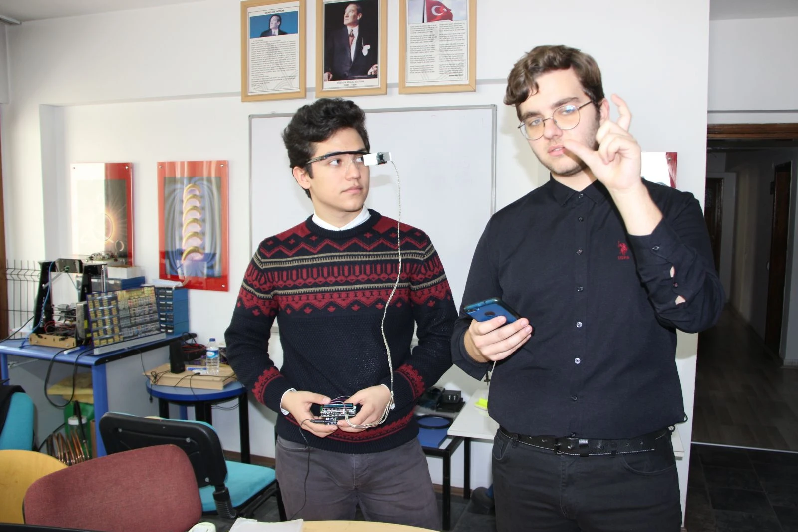 Düzce Bilim Sanat Merkezinde eğitim gören Ömer Berkay Biçen ile Dağhan Akyürek isimli gençler işitme engelli bireylerin topluma daha kolay iletişim kurması için sesi yazıya çeviren gözlük yaptılar. Cep telefonuna bulunan bir program sayesinde konuşulanlar yazıya dökülüyor gözlüğün ekranında görülüyor.