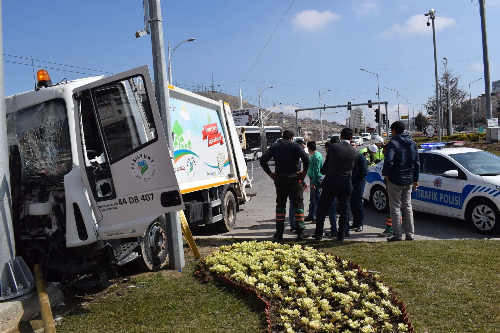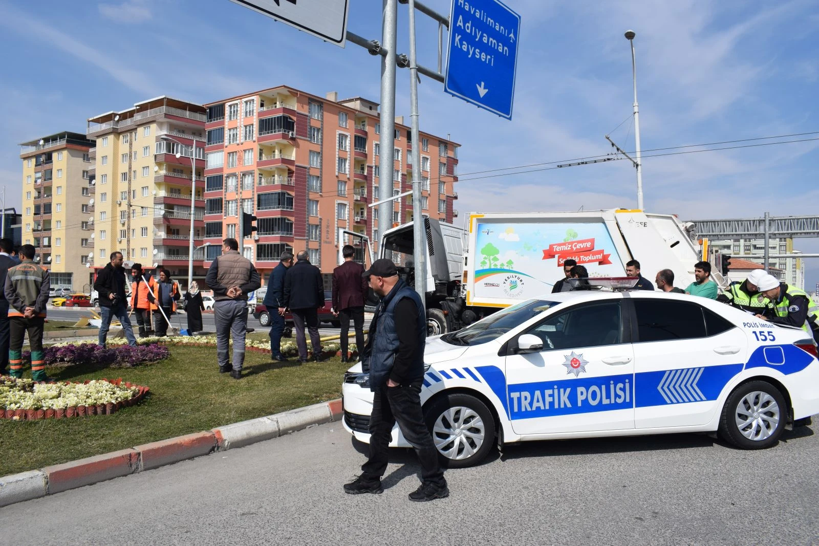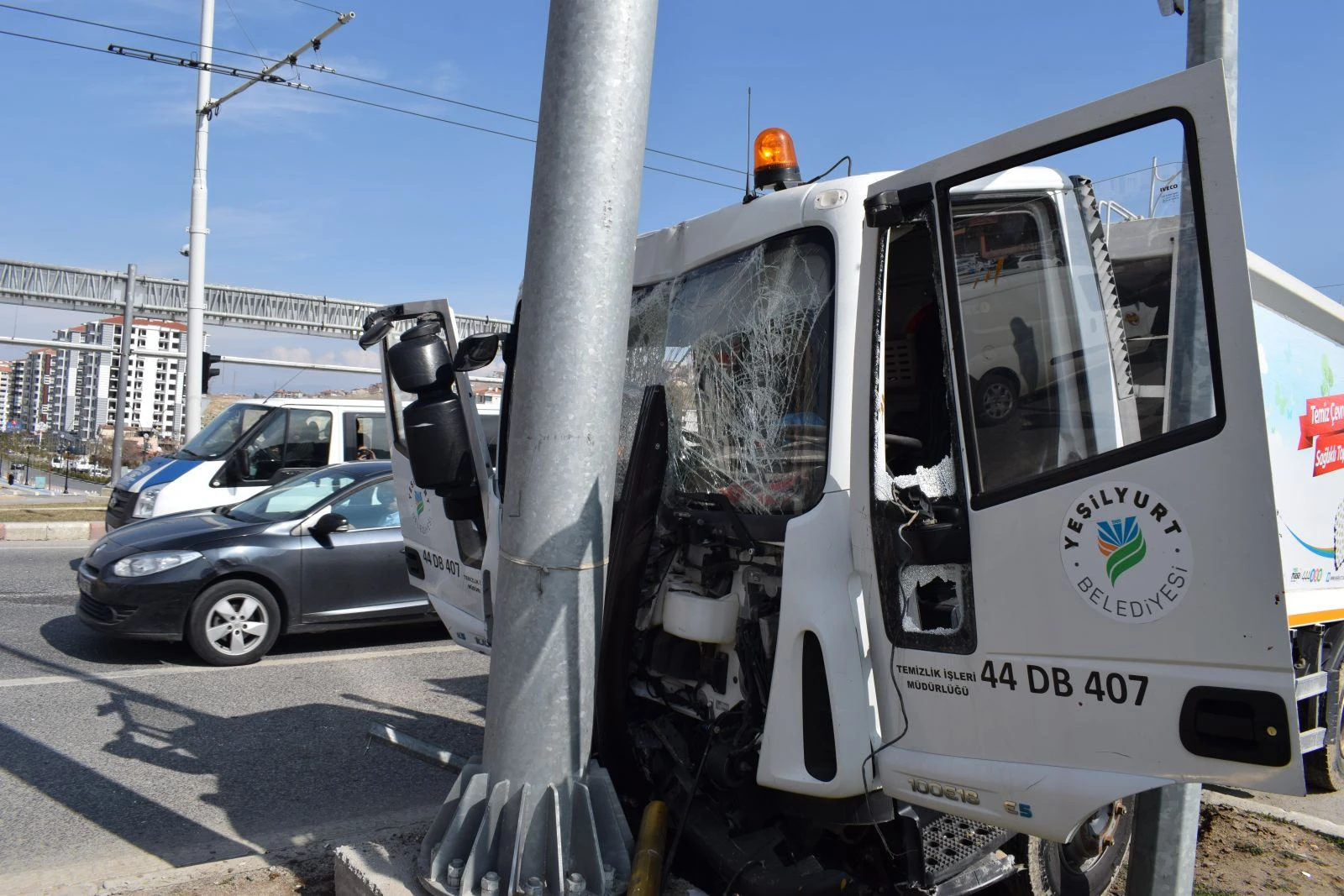 Edinilen bilgilere göre, İ.Ç. yönetimindeki 44 DB 407 plakalı çöp kamyonu D.Ç. idaresindeki 44 LF 025 plakalı otomobil ile kavşak içerisinde çarpıştı.Çarpışmanın şiddeti ile savrulan çöp kamyonunun yön levhasına vurarak durduğu kazada, araç sürücüleri İ.Ç. ve D.Ç. ile N.A., K.A.A., S.Ç., H.A.Ç., B.İ.Ç., H.Y., H.İ.Y. yaralandı.