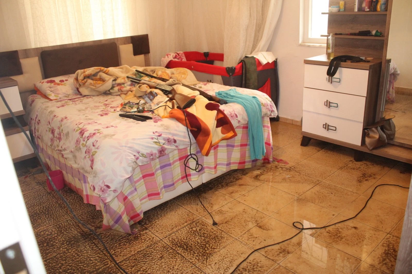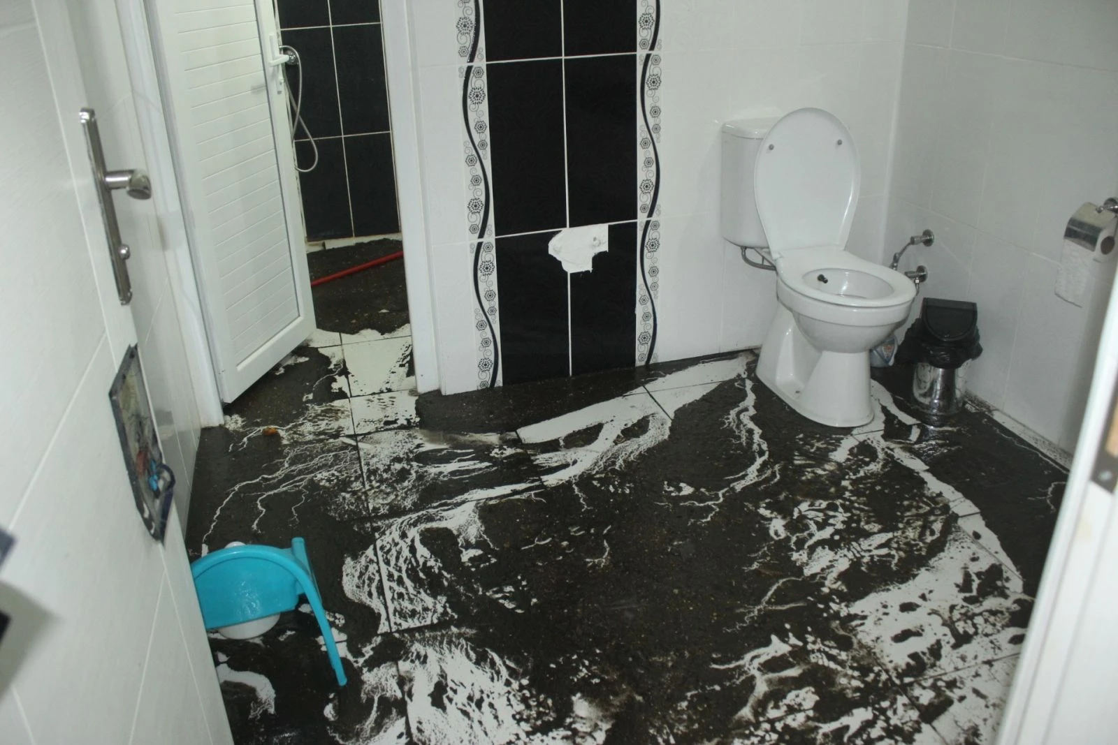 Sorgun Mahallesi Kemer Caddesi üzerinde bulunan Gökhan Özden’e ait evi tuvaletten gelen kanalizasyon suyu bastı. Ev sahipleri belediyelerin yardım taleplerine kulak asmadığını iddia ederken komşularının yardımıyla suları kovalarla dışarı boşalttı. Zeminde kalan suların boşalması için de evin zemininde bazı yerler matkapla delindi.