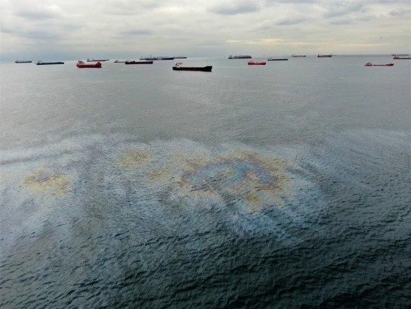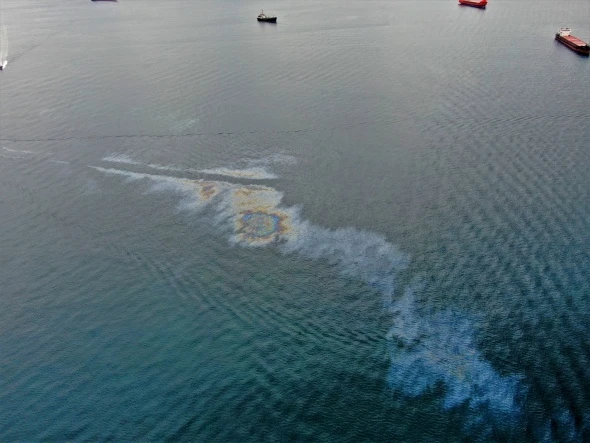 Havadan çekilen görüntülerde büyük bir alana yayılan mazot ve yağ tabakasının etki ettiği alan gözler önüne serildi. Onlarca geminin boğazda geçiş için oluşturduğu yoğunluk görüntülere yansıdı.