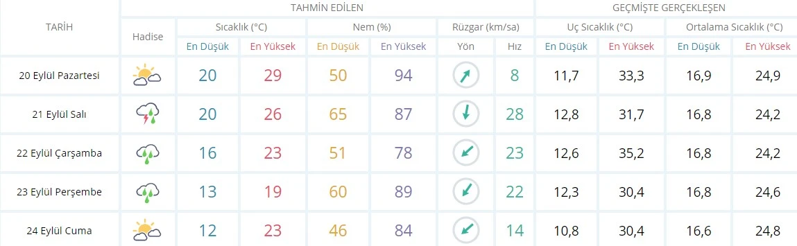 Meteoroloji Genel Müdürlüğü yetkilileri, 20 Eylül Perşembe günü ülkenin kuzey ve iç kısımlarında parçalı ve yer yer çok bulutlu bir havanın hakim olacağını kaydederek sıcaklıkların mevsim normallerinde seyredeceğini duyurdu. Batı bölgelerinde önümüzdeki iki gün için sıcaklık uyarısı verilirken İstanbul'da bugün hava sıcaklığının 30°C'yi bulması bekleniyor.