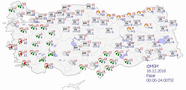 Kuzey, iç ve doğu bölgelerde sis ve pus hadisesiyle birlikte iç ve doğu kesimlerde buzlanma ve don olayı görüleceği tahmin ediliyor.