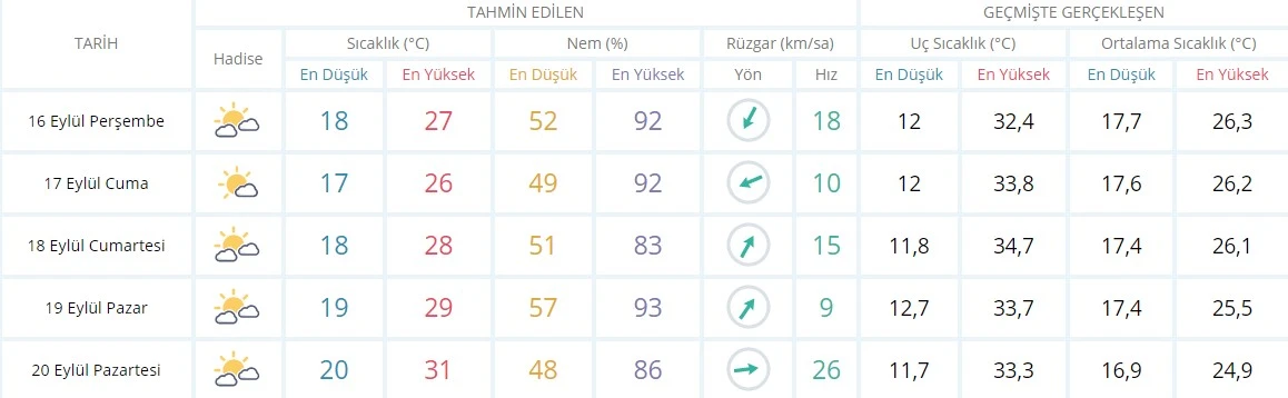 20 Eylül Pazartesi: 31°C