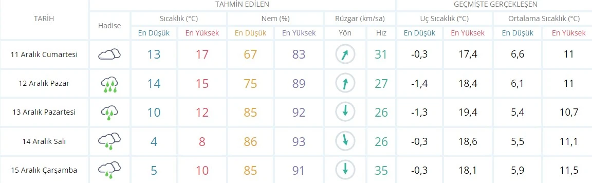 11 Aralık Cumartesi: 17°C