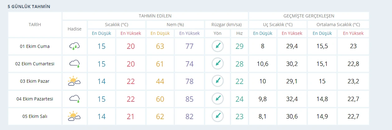 Kuzey ve iç kesimlerde mevsim normallerinin 2 ila 4 derece altında, diğer yerlerde mevsim normalleri civarında seyredeceği tahmin edilirken genellikle kuzey, Akdeniz kıyıları ile Doğu ve Güneydoğu Anadolu'da batı ve güneybatı yönlerden hafif, ara sıra orta kuvvette esecek rüzgarın, Marmara'nın güneybatı kesimleri ile Kuzey Ege kıyılarında kuzey ve kuzeydoğu yönlerden kuvvetli (40-60 km/saat) olarak esmesi bekleniyor.