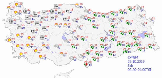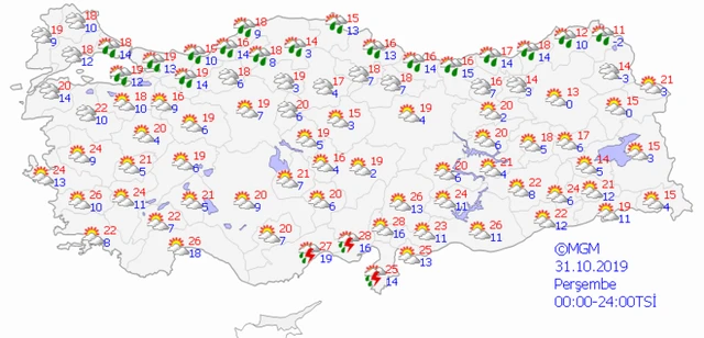 Buna göre 31 Ekim Perşembe günü İstanbul'u sağanak yağış bekliyor. Diğer günler ise bulutlu ve parçalı bulutlu geçecek.