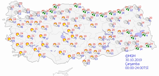 Ankara'yı ise salı gününden cuma gününe kadar parçalı bulutlu bir hava bekliyor olacak.