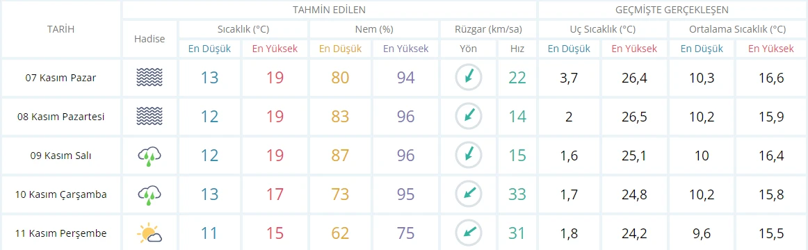 Yetkililerin yaptığı uyarıda, ülkenin kuzey ve iç kesimlerde yer yer yoğun olmak üzere sis ve pus hadisesi beklendiğinden meydana gelebilecek olumsuzluklara karşı ilgililerin ve vatandaşların dikkatli ve tedbirli olmaları ifade edildi. İşte 7 Kasım Pazar illere göre hava durumu ve İstanbul 5 günlük hava durumu...