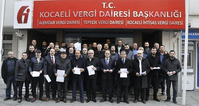 MHP Kocaeli İl Başkanı Aydın Ünlü ve beraberindeki partililer, yapılan açıklamanın ardından vergi borçlarını ödediler.