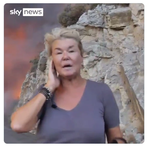 İngiltere merkezli Sky News'in muhabiri Alex Crawford, Muğla'nın Milas ilçesine bağlı Çökertme'deki yangınları anlatan Crawford, hızla yayılan alevlerin arasında kaldı. Crawford görüntülerde geldikleri yolun yangının etkisi altına girdiğini esen kuvvetli rüzgarlar eşliğinde anlattı.