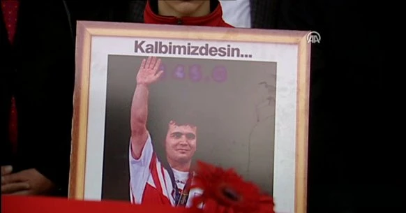 Tabutun üzerine altın madalya kazandığı bir müsabaka sonrası çekilmiş fotoğrafının konulduğu ve fotoğrafın üzerinde “Kalbimizdesin” yazıldığı görüldü.