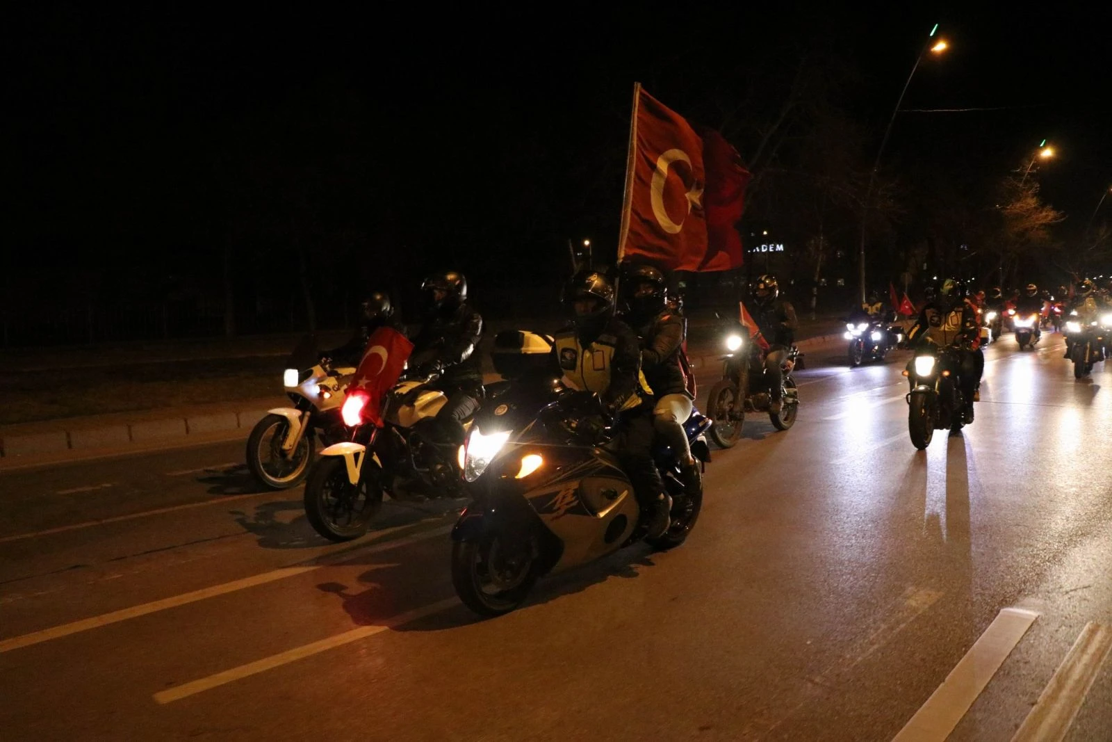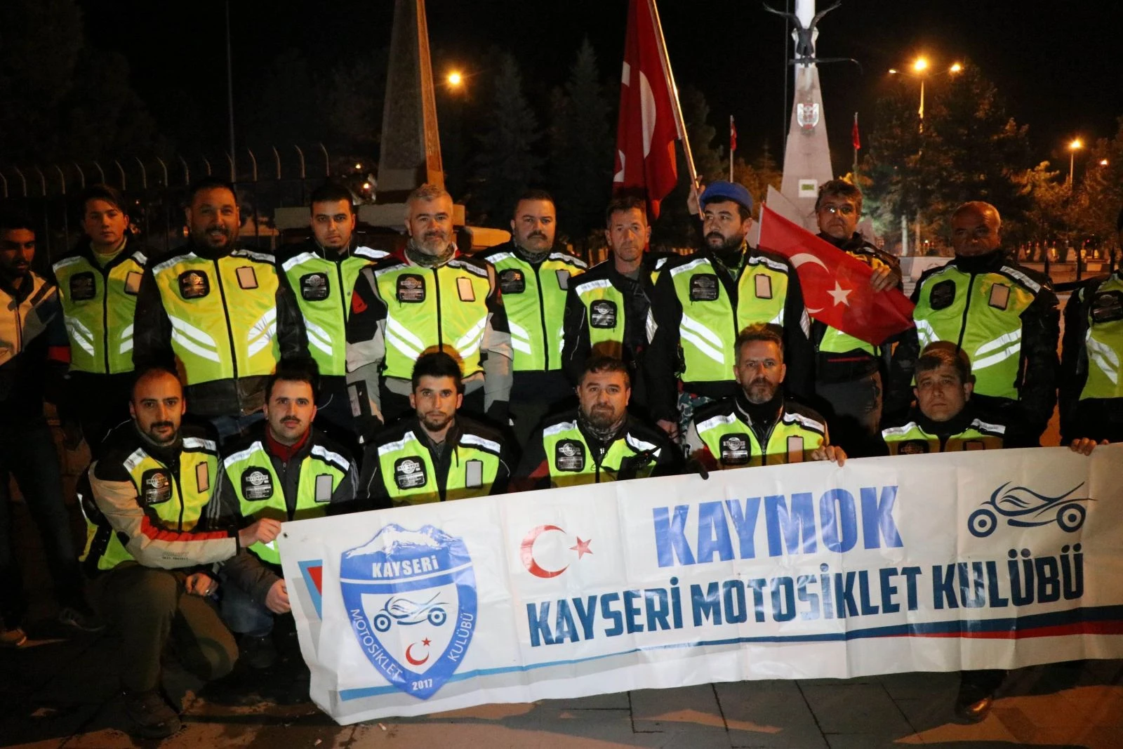 Kayseri Motosiklet Kulübü (KAYMOK) öncülüğünde düzenlenen kortej öncesinde yaklaşık 100 motosikletçi Mimarsinan Parkı'nda toplandı. Türk bayrakları ile donattıkları motosikletleri ile tura başlayan motosikletçilere Kayserililer de ilgi gösterdi. Güvenlik önlemleri arasında Kartal Hava Şehitliğine gelen motosikletçiler, burada saygı duruşunda bulunduktan sonra İstiklal Marşı'nı okudu.