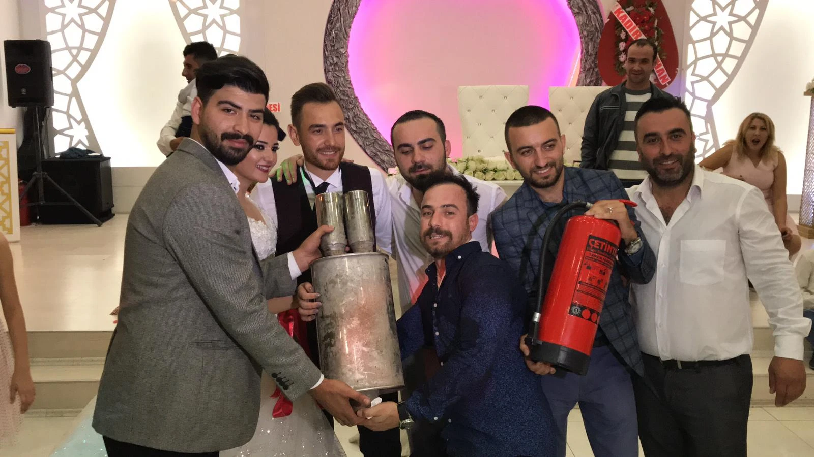 Niğde'de bir düğün salonunda yapılan törenle Sevda Veziroğlu ile Onur Turgut dünya evine girdi. Damadın arkadaşları takı töreni sırasında, davetlilerin şaşkın bakışları altında genç çifte egzoz ve yangın tüpü armağan etti. Damadın arkadaşı ve olayın fikir babası Ömer Yücel, Dinamit Gençlik adı altında gruplarının olduğunu ve grup üyesi 8 arkadaşın birbirlerini çok sevdiğini söyledi. Geçen yıl bir başka arkadaşlarının düğününde de yangın tüpü hediye ettiklerini belirten Yüce, "Farklı ve eğlenceli bir şey ortaya koymak için bunu yaptık. Onur kardeşimiz arabaları çok seviyor. Ona da arabasıyla ilgili olarak egzoz taktık. Yangın tüpü de grubumuzun simgesi haline geldiği için yanında onu da verdik. Kardeşimiz çok sevindi ve çok eğlenceli dakikalar yaşadık. Herkes çok eğlendi. Grubumuzdaki tüm arkadaşlarımız evlenince farklı hediyeler vereceğiz. Kardeşimize bir ömür boyu Dinamit Gençlik grubu olarak mutluluklar diliyoruz" dedi.