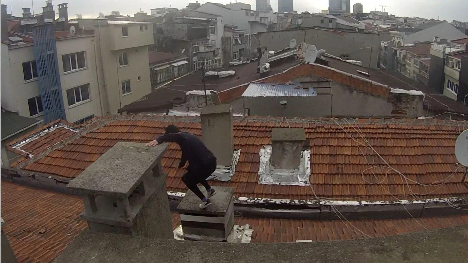 Düşme tehlikesi geçirdi ama çatıdan çatıya atladı