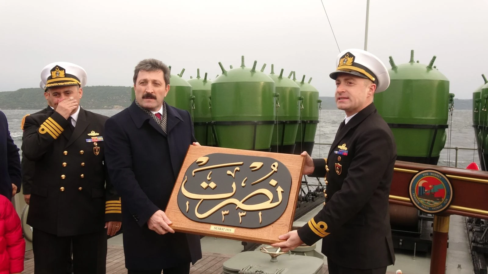 Program sonunda Vali Tavlı'ya Nusret Mayın Gemisi'nin bordasında taşıdığı metal Nusret 1915 yazısının ahşap tablosu hediye edildi.