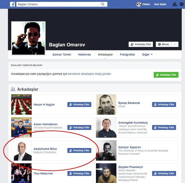 Sosyal medya hesabından sürekli olarak FETÖ propagandası yapan Baglan Omarov'un FETÖ'nün medya imamı Abdulhamid Bilici'yi takip etmesi dikkat çekiyor.