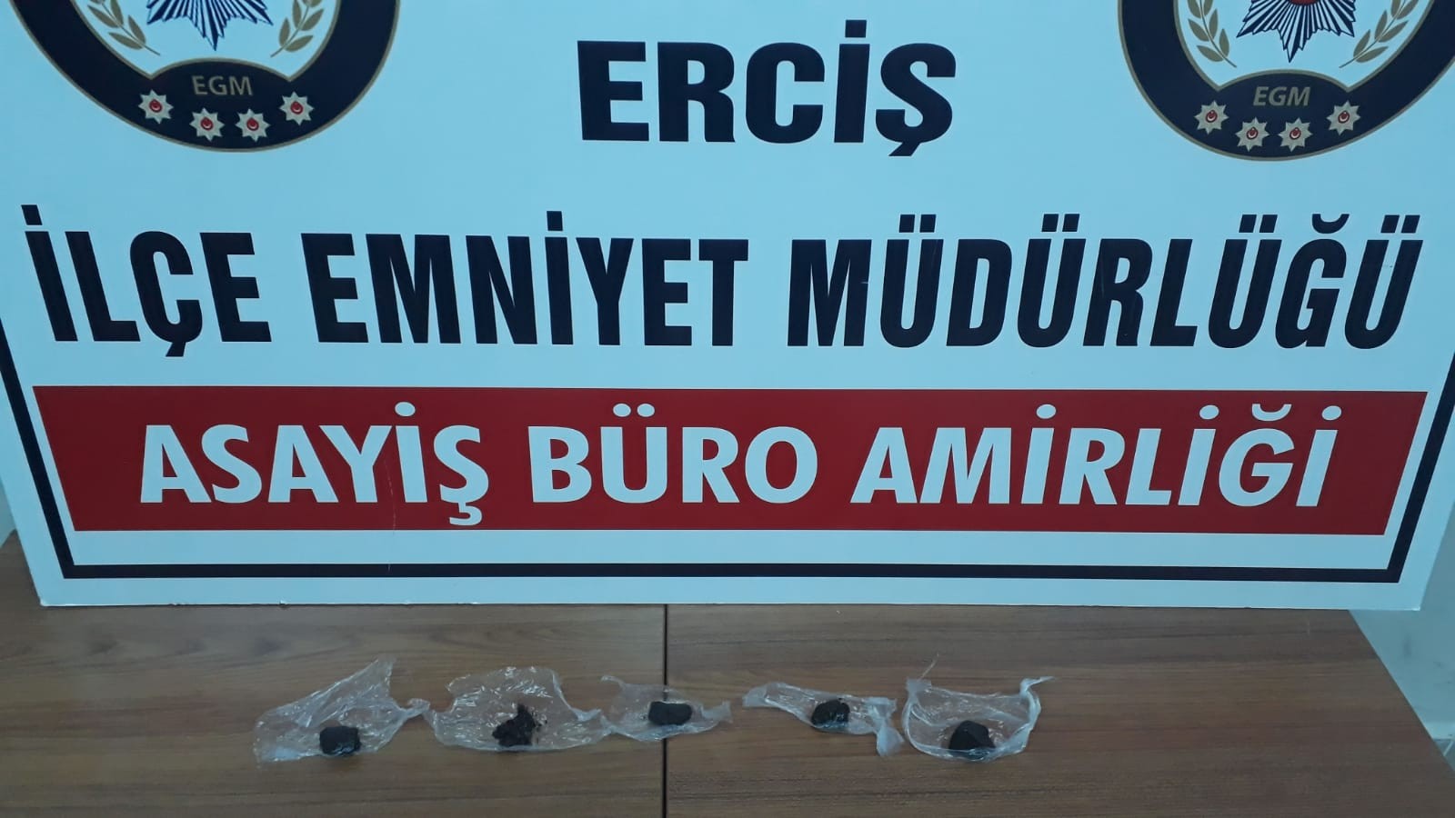 Edinilen bilgilere göre, Erciş İlçe Emniyet Müdürlüğü Asayiş Büro ekipleri sabah saatlerinde yolcu minibüslerinde rutin uygulamalarından birini gerçekleştiriyordu. Yolcuların kimlik kontrolünü yapan ekipler, durumundan şüphelendikleri Y.K.'yi araçtan indirerek kaba üst araması gerçekleştirdi. Üzerinde 28,80 gram Afyon sakızı çıkan Y.K. gözaltına alınarak İlçe Emniyet Müdürlüğüne götürüldü. Y.K. ifadesinde uyuşturucunun babası V.K.'ye ait olduğunu söyledi. Gözaltına alınan baba V.K. ise, tutuklanarak cezaevine konulurken, Y.K. serbest bırakıldı.