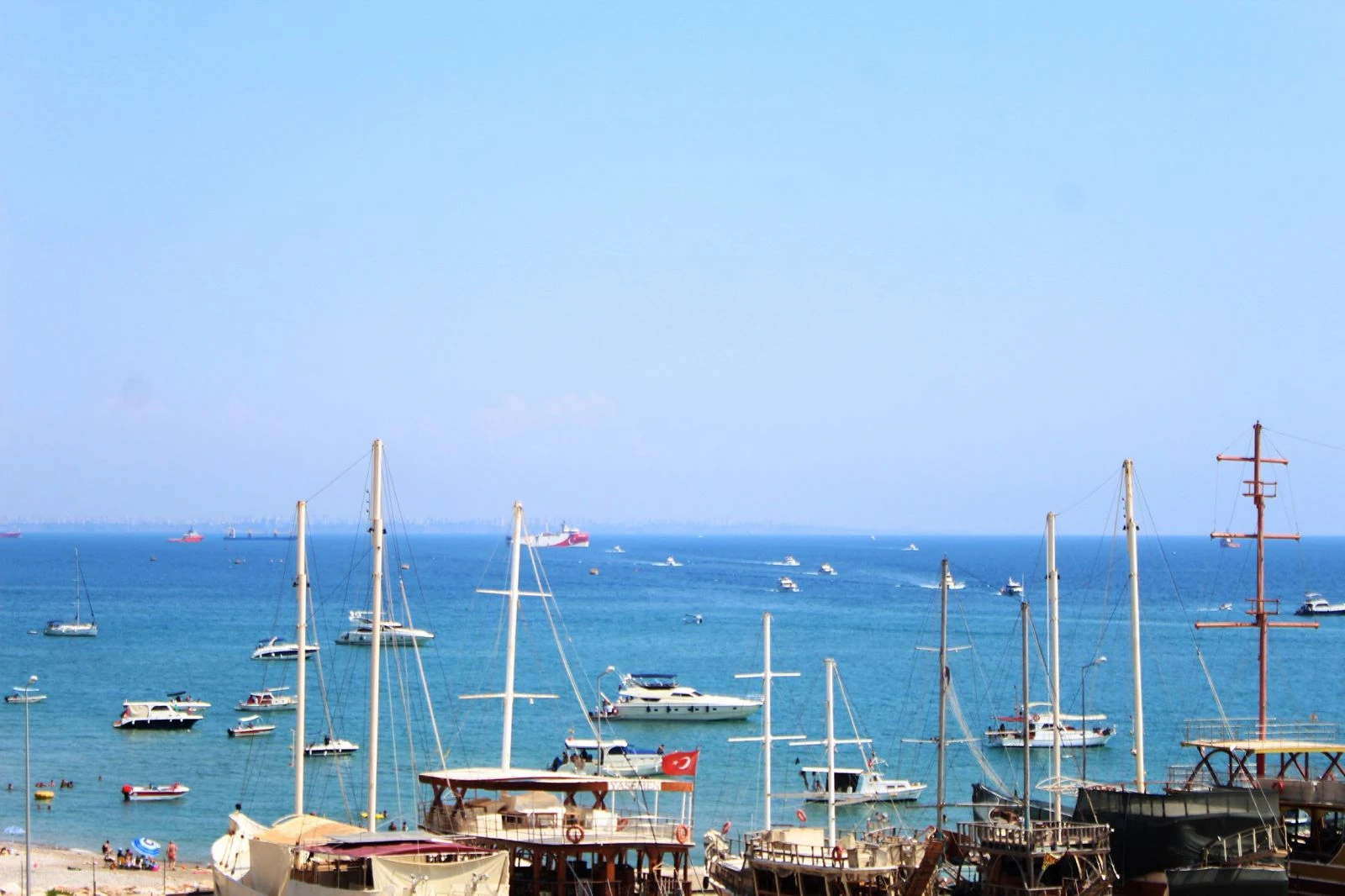 Bir aydır Doğu Akdeniz'de araştırmalarını sürdüren Oruç Reis, Kıbrıs açıklarında ilan edilen bölgedeki çalışmalarını tamamlayrak dün akşam saatlerinde Antalya Limanı açıklarına demir attı. Çok sayıda tur teknesi de Oruç Reis’i yakından görebilmek için çevresinden geçti. Deniz polisinin de Oruç Reis’in yakınındaki gemilerin çevresinde görev aldığı görüldü.