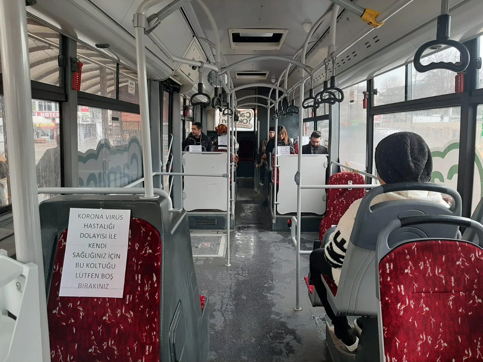 Salgının başlaması ile birlikte tüm şehir içi yolcu otobüslerinde el dezenfektanı yerleştiren Büyükşehir Belediyesi, ayrıca düzenli olarak her gün otobüslerin dezenfekte edilmesini sağlıyor. Tüm otobüslerde hayata geçirilen sosyal mesafe uygulaması ile yolcular diğer yolcularla mesafeli olarak yolculuk edecek. Koltuklara yapıştırılan uyarı da ‘Korona virüs hastalığı dolayısıyla kendi sağlığınız için bu koltuğu boş bırakınız” notu yazıyor.