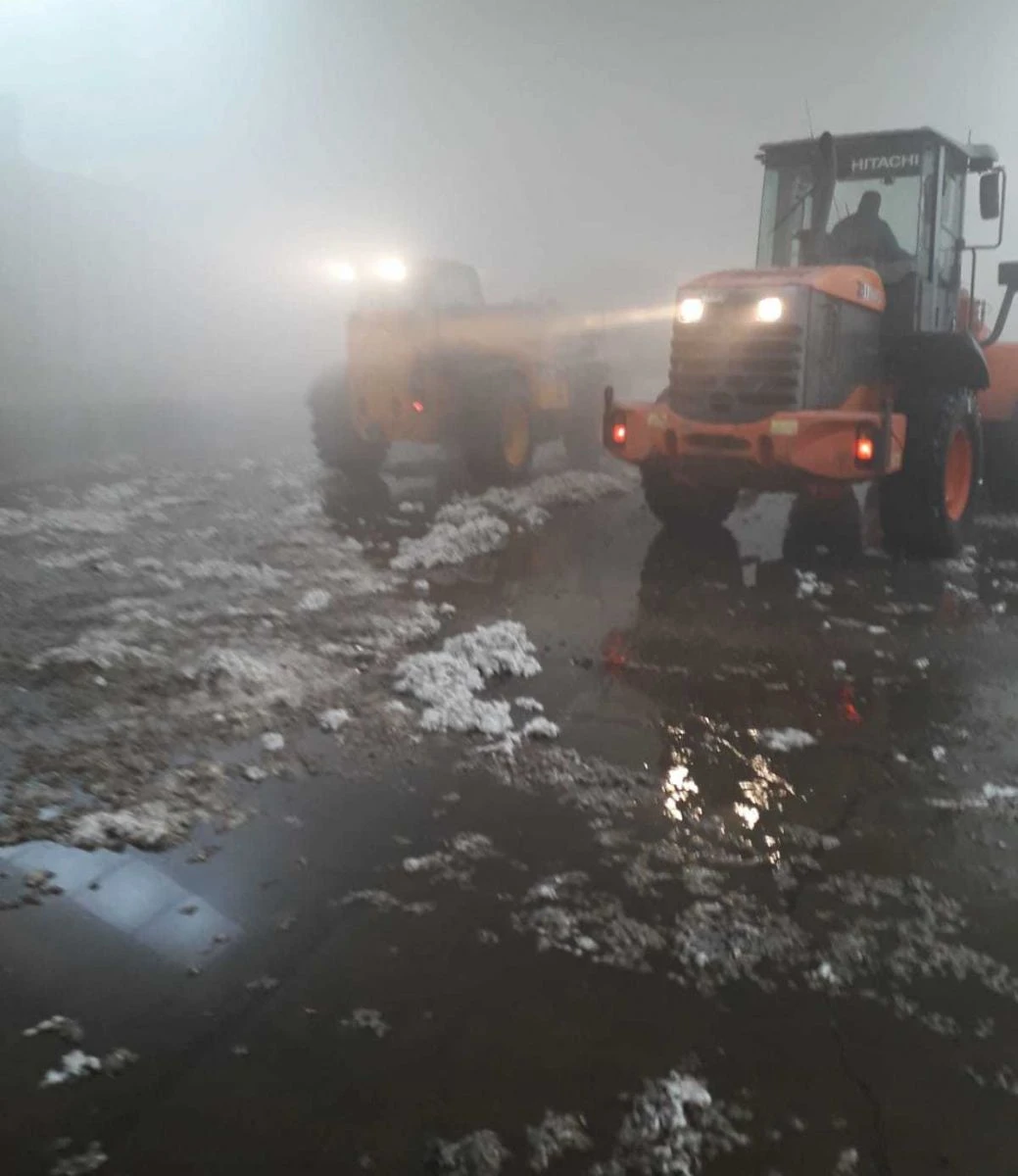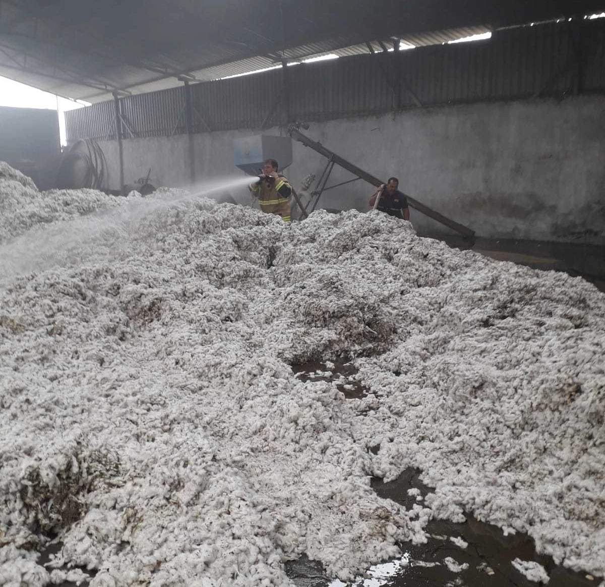 Çalışanlar, alevlerin deponun diğer kısımlarına sıçramaması için iş makineleriyle pamukları dışarı taşıdı.