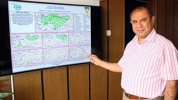 Meteoroloji 2. Bölge Müdürü M. Latif Gültekin, Kuzey Afrika'dan gelecek sıcak hava dalgasını değerlendirdi. Bugün, yarın ve çarşamba günü 37 derecelik sıcaklık yaşayacak olan İzmir, perşembe ve cuma günü adeta kavrulacak. Gültekin, "Perşembe ve cuma günü İzmir'in sahil kesimlerinde hava sıcaklığının 39 dereceye, iç kesimlerdeki hava sıcaklığının ise 42 dereceye kadar çıkması bekleniyor. Mevsim normallerinin 5-6 derece üzerinde bir sıcaklıkla karşılaşacağız. Cumadan sonra kuzeyden gelen serin ve yağışlı havanın etkisiyle cumartesi gününden itibaren sıcaklıklar düşecek. Cumartesi günü 37-38, pazar günü ise 36 derecelik bir sıcaklık bekleniyor. Pazartesi yağışlı havanın da etkisiyle sıcaklık 5 derece düşerek 31-32 derece arasında seyredecek" dedi. Gültekin, perşembe ve cuma günü, vatandaşların direkt gelen güneş ışınlarından kaçınmaları gerektiği uyarısında bulundu.