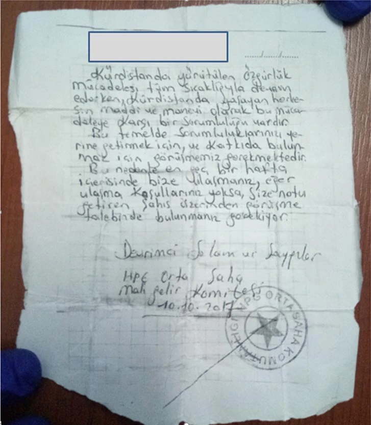 "PKK/KCK terör örgütü mensuplarınca, terörizmin finansmanı bağlamında; insan gücü, silah, mühimmat, erzak, yaşam ve giyim malzemelerinin temini ile terörist eylemlerin gerçekleştirilebilmesi maksadıyla, bazı şahıs ve şirketlerden 9 milyon 124 bin Türk Lirası, 474 bin 900 dolar ve 50 bin avro para alınması ya da anılan şahıs ve şirketlerce bölücü terör örgütü mensuplarına yardımda bulunulmasıyla ilgili elde edilen sabit delillere istinaden, Diyarbakır Cumhuriyet Başsavcılığı talimatları doğrultusunda yürütülen soruşturma kapsamında, davet edilerek çağırılan 53 şahıs/şirket şüphelisinden 13 kişi tutuklanmış, 5'i adli kontrol şartıyla olmak üzere 40 şahıs serbest bırakılmıştır."