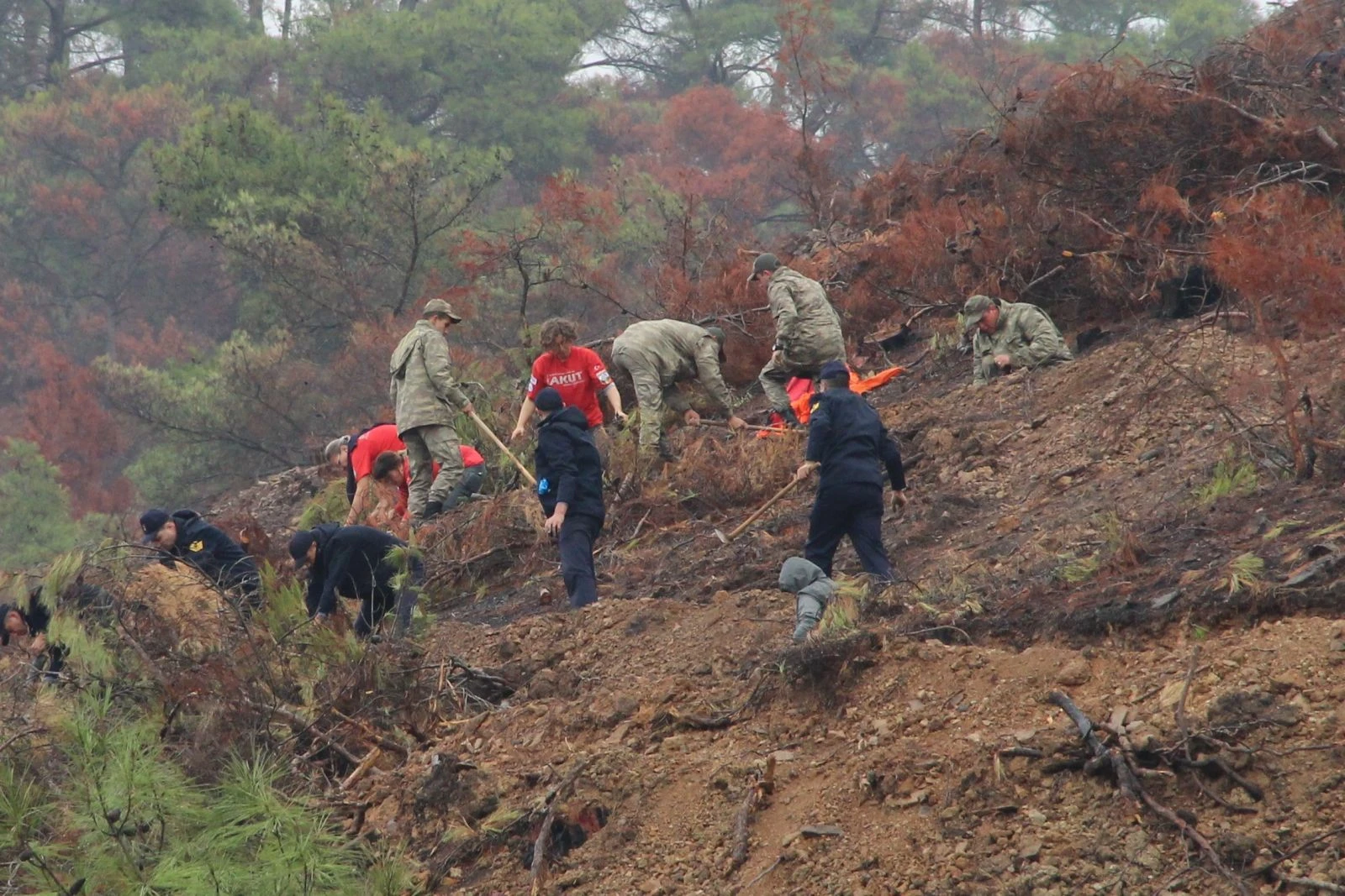 İzmir’de terör örgütü PKK üyeleri tarafından ateşe verildikten 53 saat sonra söndürülebilen ormanlık alanda yaralar sarılıyor. Tüm Türkiye’de aynı anda başlayan fidan dikme seferberliği kapsamında İzmir’de de ormanların küle döndüğü Menderes ilçesine bağlı Orhanlı köyünde tören düzenlendi.