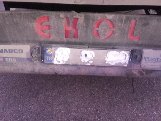 Afyonkarahisar-Antalya kara yolunun 62. kilometresindeki kantar denetiminden kaçmak isteyen tır sürücüsü H.D, aracının ön plakasını söktü, dorsedeki plakayı da traş köpüğüyle kapattı.