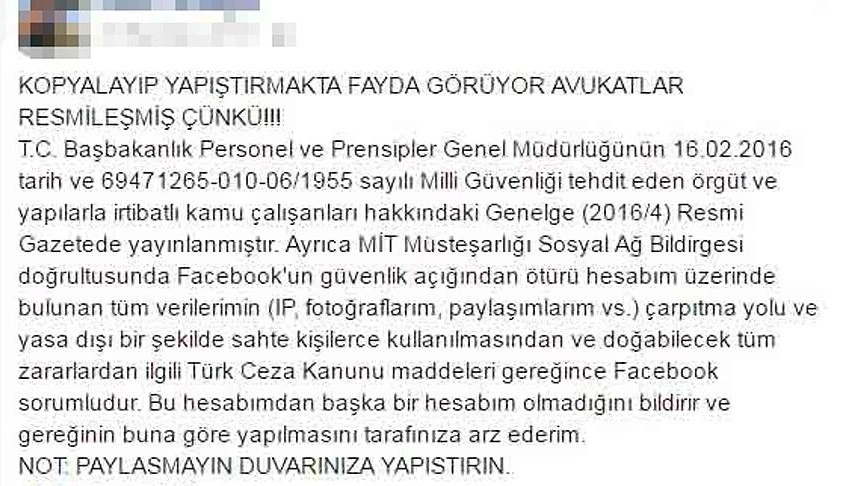 Son dönemlerde sosyal medya kullanıcılarının, "Resmileşti dikkat" başlığı altında yaptığı paylaşımların hukuki bir boyutunun olmadığı belirtildi. Mersin Barosu Başkanı Alpay Antmen, belli aralıklarla sosyal medyada ortaya çıkan ve kullanıcıların her seferinde paylaşmaktan kendini alıkoyamadığı bu tarz yazıların asılsız olduğunu söyledi.