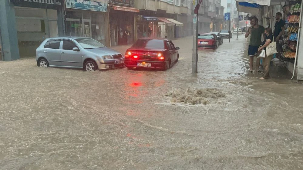 Ordu'nun Fatsa ilçesinde aniden etkili olan şiddetli sağanak sele dönüştü. Karadeniz Sahil Yolu ulaşıma kapanırken, çok sayıda iş yerini su bastı.