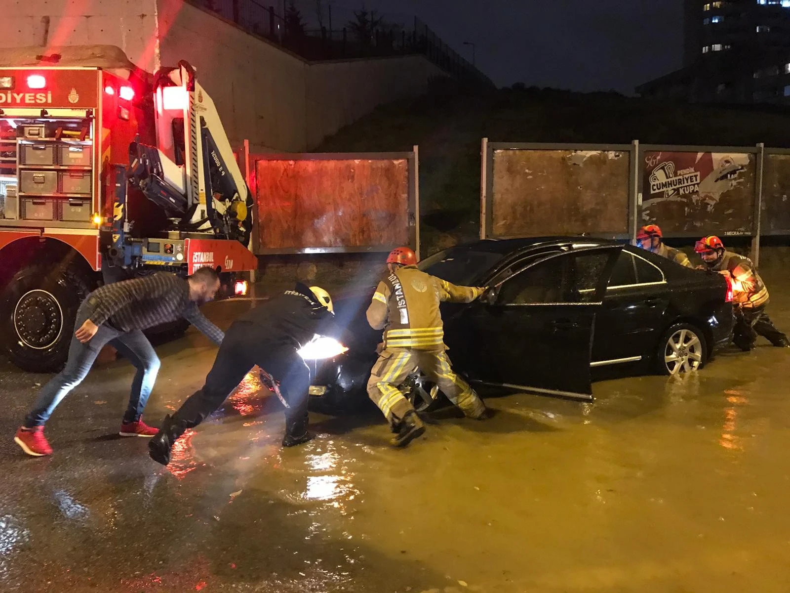 Saat 22.00 sıralarında Pendik ilçesi Yenişehir Mahallesi Cumhuriyet Bulvarı'nda, etkili olan sağanak sonrası göle dönen yolda iki otomobil mahsur kaldı. Araçlar içerisinde bulunan toplam 4 kişi kendi imkanlarıyla kurtulurken itfaiye ekipleri kısa sürede olay yerine geldi.